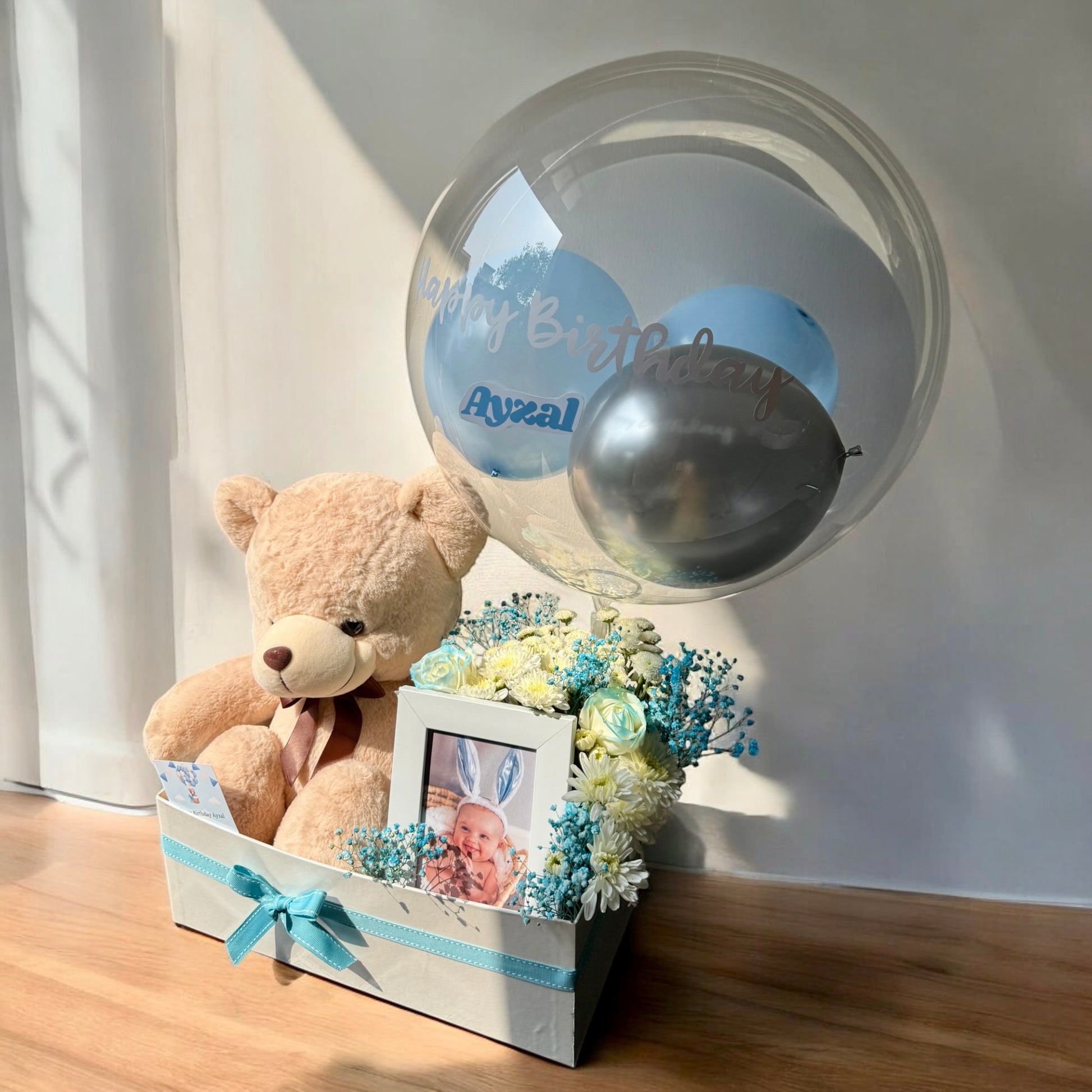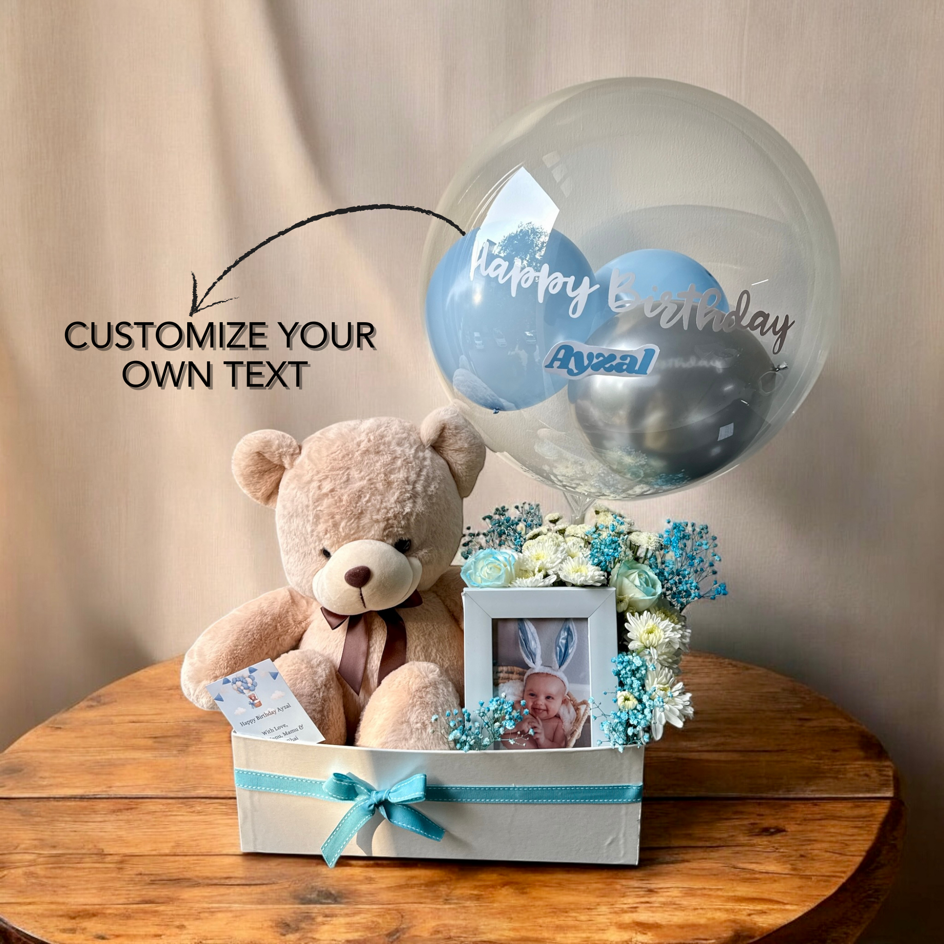 Cute hamper for baby boy shower, loved the blue theme and cake combo. Nutbit Choco nailed the packaging!