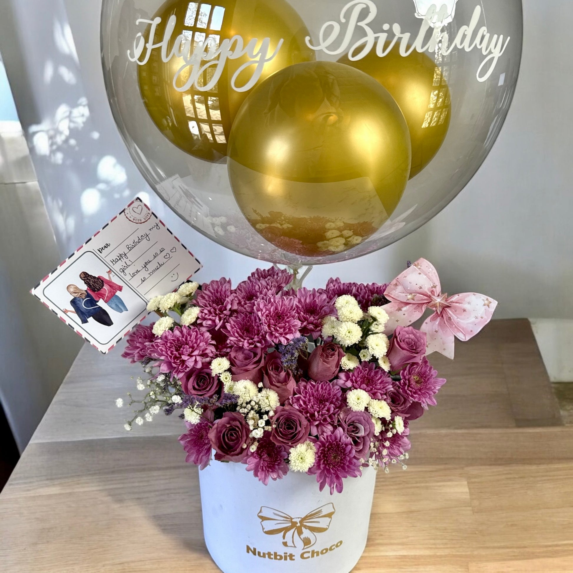 I order this for birthday. It was same as picture, even more pretty. Flowers were fresh n balloon looks amazing. Delivery was on time, Nutbit Choco never disappoints 😊