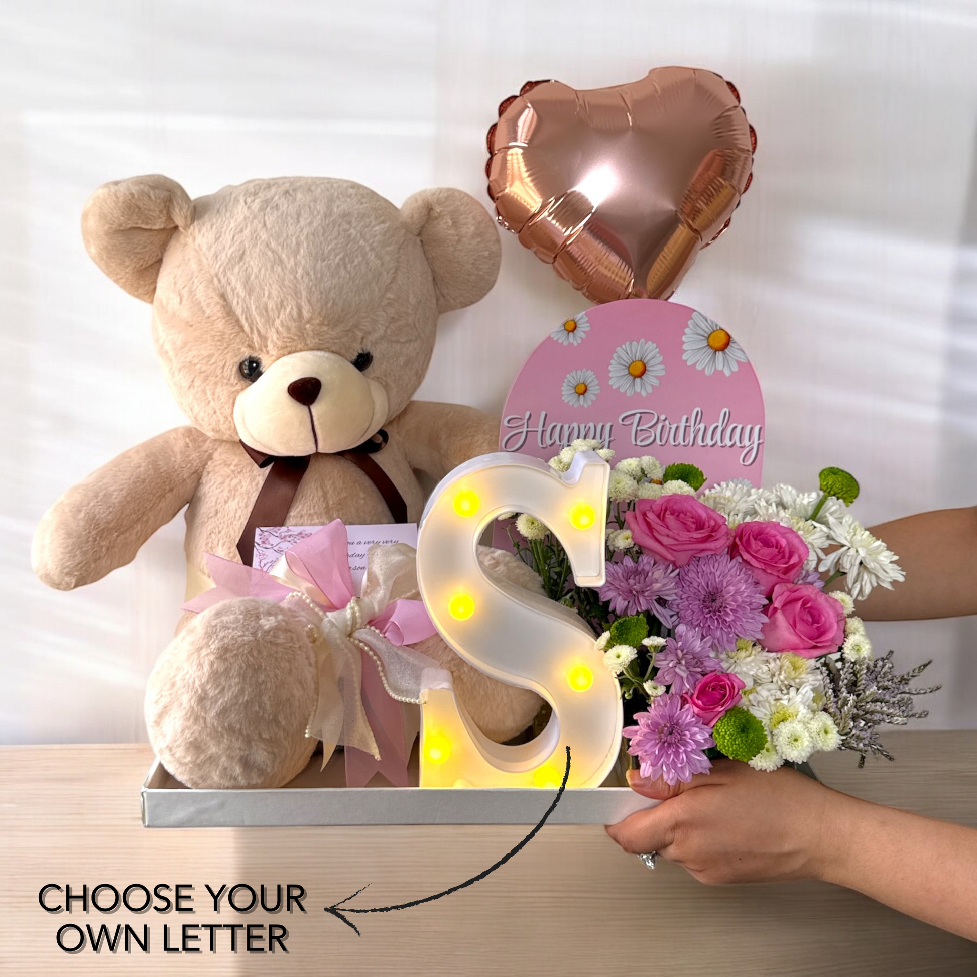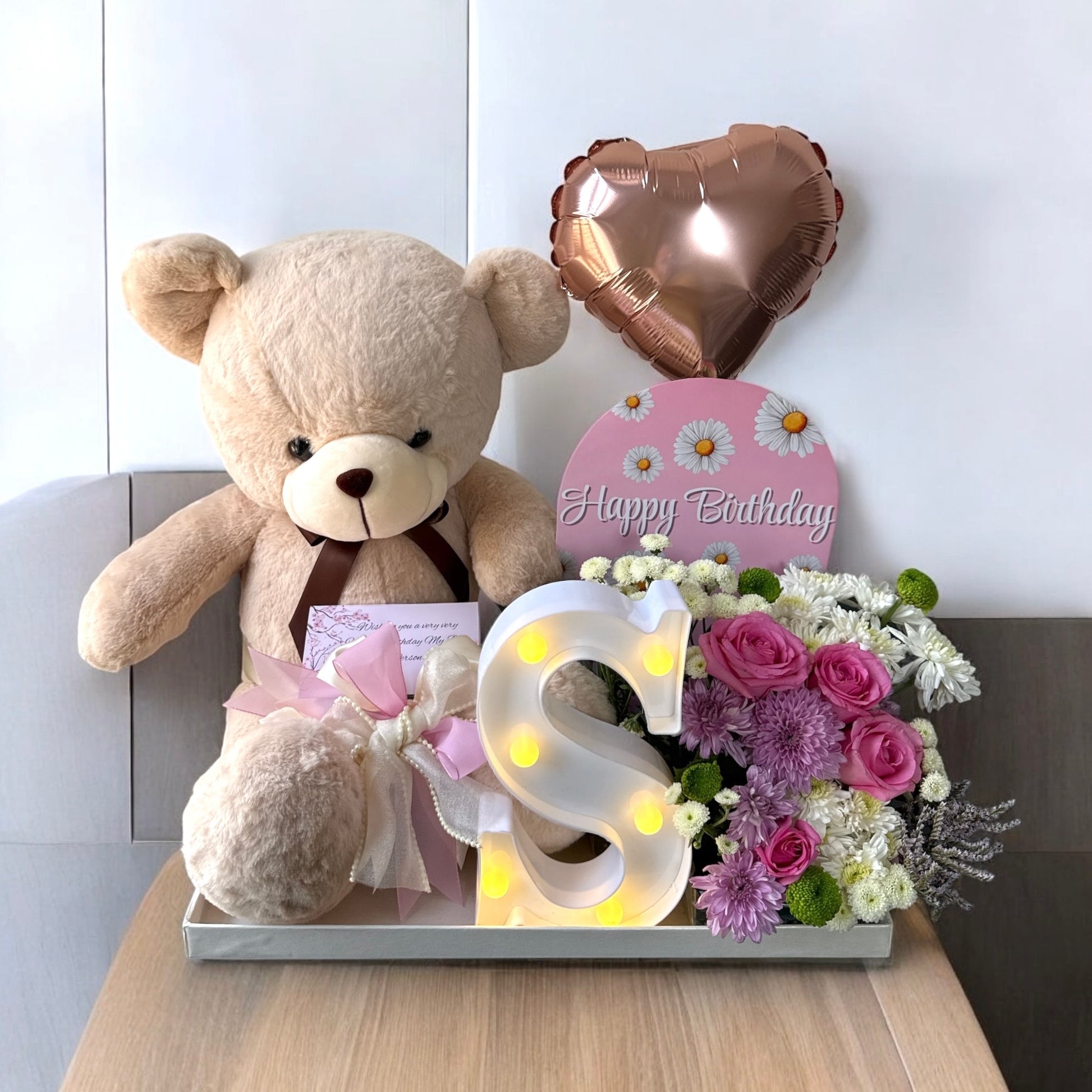 "Perfect surprise gift! Teddy bear and flowers brought a smile to her face."
